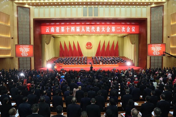1月24日上午9時(shí),云南省第十四屆人民代表大會(huì)第二次會(huì)議在昆明云南海埂會(huì)堂開幕。陳飛 高吳雙 攝