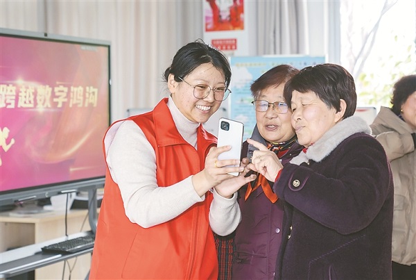 我國持續加快信息化服務普及,縮小數字鴻溝,讓更多人共享互聯網發展成果。圖為3月18日,江蘇省南通市海安高新區志愿者在隆政街道林橋村農家書屋手把手指導老年人使用智能手機應用。