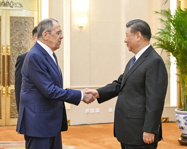 4月9日下午,國家主席習近平在北京人民大會堂會見俄羅斯外長拉夫羅夫。新華社記者 李學仁 攝