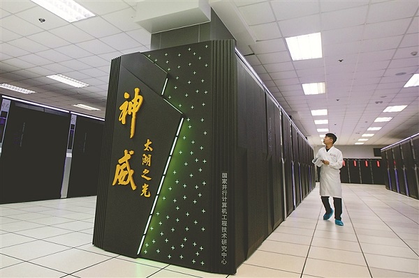 “神威·太湖之光”問世以來,各項性能指標持續位居世界前列,實現穩定、可靠、安全運行。圖為工作人員在超級計算機“神威·太湖之光”旁工作。圖片來源:視覺中國