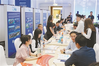 “投資北京”大會順利進行的同時,位于咨詢臺西側(cè)、面積2880平方米的論壇主會場暢春廳里,配套開展的投資洽談活動正緊鑼密鼓地推開。本次大會設(shè)置企業(yè)展示與投資咨詢洽談區(qū),組織政府、企業(yè)和投資機構(gòu)進行產(chǎn)業(yè)政策咨詢,并就項目投融資、空間資源對接、技術(shù)和渠道合作等方面深入交流,促進項目落地。