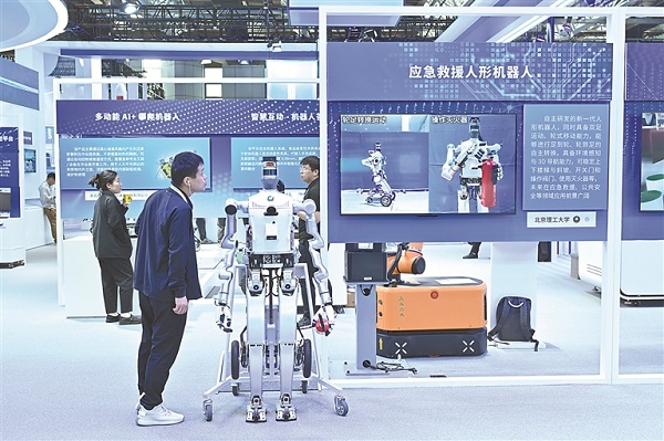 圖為2024中關村論壇年會期間,中關村展示中心常設展上展示的一款應急救援人形機器人。 新華社記者 李鑫 攝