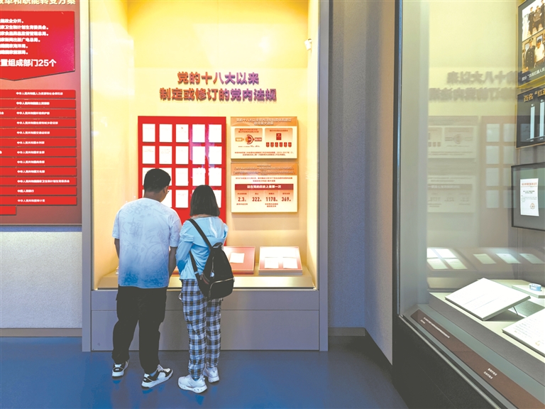 6月18日,中國共產黨歷史展覽館開館三周年。圖為近日,觀眾在黨的十八大以來制定或修訂的黨內法規展板前駐足參觀。李靈娜 攝