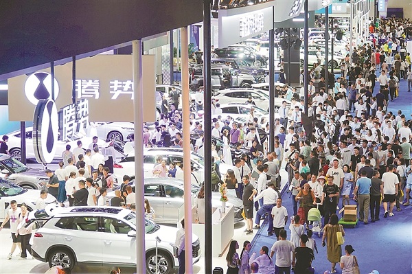 7月17日,在第21屆長春國際汽車博覽會上,觀眾在自主品牌新能源汽車展區(qū)參觀。 圖片來源:視覺中國