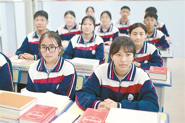 位于青海省西寧市城北區(qū)的果洛西寧民族中學(xué)是滬青共建的一所學(xué)校,上海援青團(tuán)隊(duì)落實(shí)各類教育資金,改善校園面貌,帶動(dòng)果洛州整體辦學(xué)水平和教育教學(xué)質(zhì)量不斷提高。圖為果洛西寧民族中學(xué)學(xué)生在上課。 新華社記者 張龍 攝
