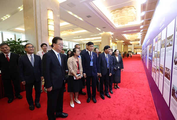 會(huì)前,王寧和與會(huì)嘉賓參觀《廉潔護(hù)航“一帶一路”行穩(wěn)致遠(yuǎn)》主題展。周燦 胡妤雅 攝