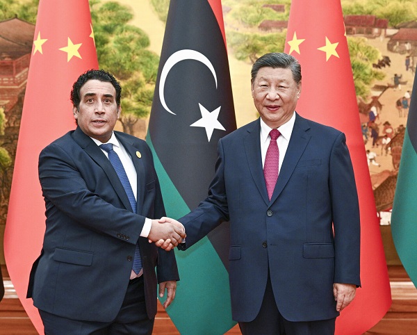 9月4日下午,國家主席習近平在北京人民大會堂會見來華出席中非合作論壇北京峰會的利比亞總統委員會主席曼菲。兩國元首宣布,中利建立戰略伙伴關系。
