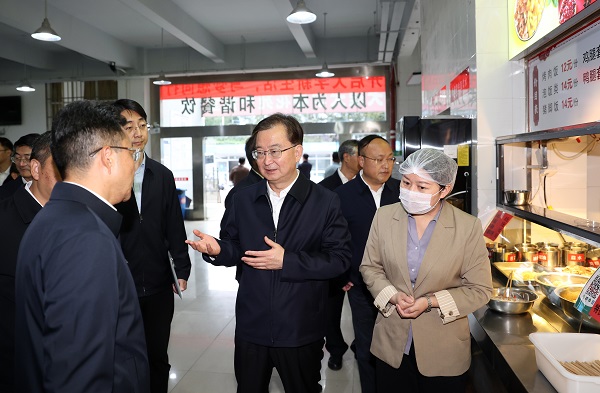 在大理大學,王寧聽取學校建設、學科發展等情況介紹,充分肯定學校發展成效,鼓勵不斷提升辦學水平,做強特色優勢專業,深化對外交流合作,培養更多優秀人才,在學生心理健康教育的研究實踐上有更多創新突破。王寧還不打招呼隨機走進學生食堂,仔細查看食材質量、就餐環境,向工作人員詳細了解供餐流程和管理情況,強調一定要抓實抓細食品安全工作,健全制度機制,強化責任落實,確保師生吃得放心、安心。