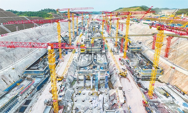 10月的廣西,自南寧平塘江口至欽州入海口,平陸運河的建設現場熱火朝天。