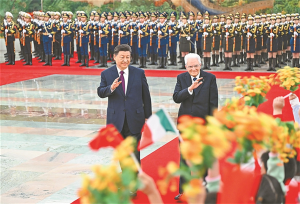 習近平指出,今年是中意建立全面戰(zhàn)略伙伴關(guān)系20周年。雙方發(fā)表了加強全面戰(zhàn)略伙伴關(guān)系的行動計劃,一致同意秉持歷史悠久的絲路精神,推動雙邊關(guān)系進入發(fā)展新階段。當今世界正在經(jīng)歷百年未有之大變局,中國和意大利作為兩大文明古國,應(yīng)該弘揚開放包容、兼容并蓄的傳統(tǒng),推動國際社會以對話化解分歧、以合作超越?jīng)_突,攜手構(gòu)建和合共生的美好世界。
