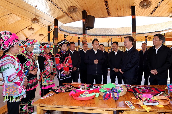 大姚縣紫丘村移民搬遷十年來,群眾生產生活發生巨變。王寧走進彝繡坊、粉絲加工車間,向繡娘、合作社負責人詳細了解群眾就業方式、增收情況。他強調,基層組織力是群眾增收的堅強保障,要創新組織模式,挖掘好家門口的資源,拓寬家門口的增收路子。