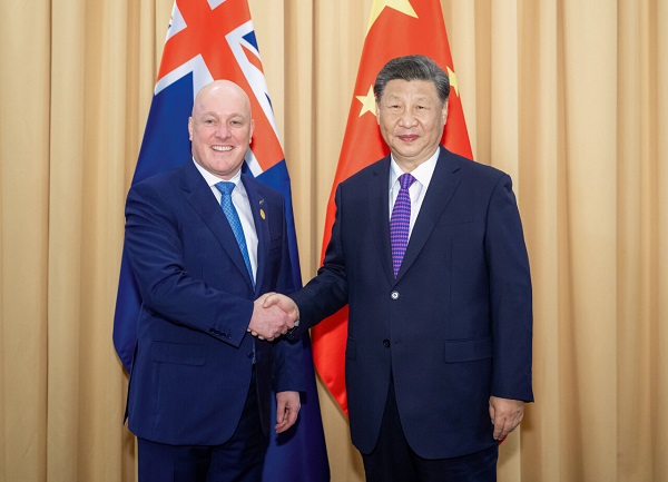 習近平指出,10年前,我訪問新西蘭,雙方決定建立中新全面戰略伙伴關系。10年來,中新關系保持健康穩定發展勢頭,有力增進了兩國人民福祉,值得倍加珍惜。中新兩國同為亞太地區重要成員,經濟互補性、互惠性強,雙方沒有歷史恩怨糾葛,沒有根本利益沖突,應該把彼此視為機遇和伙伴,而不是挑戰或威脅;應該冷靜務實地管控分歧,而不是讓分歧定義兩國關系。中方愿同新方一道,繼續發揚“爭先”精神,共同打造相互尊重、彼此包容、聚焦合作、共同發展的中新關系,助力各自國家發展。