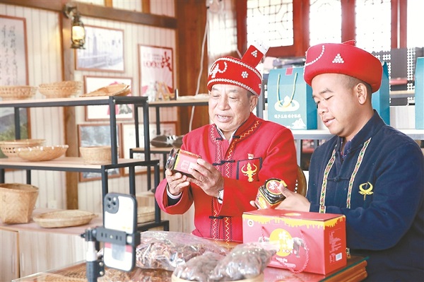 滄源縣班洪村老支書胡德學(xué)帶領(lǐng)群眾利用電商平臺(tái)銷售農(nóng)特產(chǎn)品,為當(dāng)?shù)靥禺a(chǎn)開(kāi)辟“云銷路”。關(guān)汪武 攝