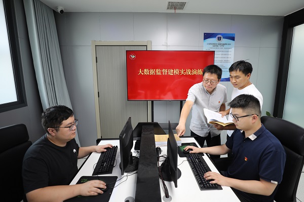 江蘇省盱眙縣紀委監委通過以老帶新、跟班鍛煉等模式,幫助年輕紀檢監察干部提升執紀執法能力和業務水平。圖為該縣紀委監委組織年輕干部開展大數據監督建模實戰演練。(江蘇省盱眙縣紀委監委 蔣繼偉 攝)