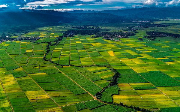 這幅美景展現的是芒市遮放壩子的田園風光,云南省特色名牌農產品遮放貢米就產于這片田野。