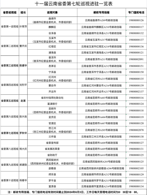 十一屆云南省委第七輪巡視進(jìn)駐一覽表
