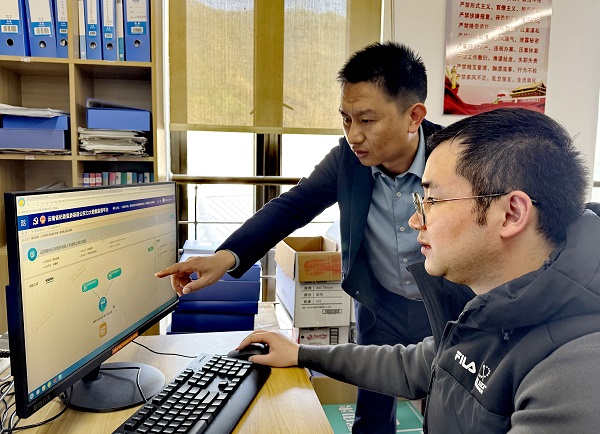圖為怒江州紀委監委干部分析研判違規占用公租房大數據監督預警信息。(張媛賢 攝)