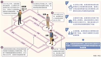 首先,從主觀認識看,請托人杜某看中的是趙某某手中的職權能為其公司謀取利益;就汪某而言,其之所以愿意違反公平原則為杜某謀取利益,實際是懾于趙某某的職權,為的是自己的貸款審批能在趙某某處獲得通過;就受賄人趙某某而言,其主觀上具有收受杜某財物的認識因素和意志因素,能夠認識到這些財物是對自己利用職務上的便利為杜某公司謀取利益的回報。其次,從客觀行為看,趙某某充分利用了其職務上的便利,通過具有職務上制約關系的汪某的行為,使杜某違背公平公正的市場交易規則獲取了利益。最后,從結果看,趙某某通過汪某幫助杜某獲得了利益,并基于該履職行為收受杜某財物。綜上,趙某某利用具有職務上制約關系的汪某的行為為請托人杜某謀取利益并收受財物的本質是權錢交易,構成受賄。