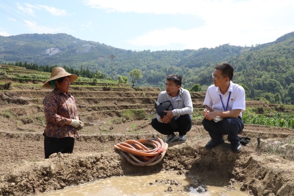 開遠市紀委監委把春耕備耕作為當前監督重點,聚焦惠農政策落實、農資保供、農技服務等方面,將監督探頭延伸至田間地頭,有力護航春耕備耕工作。圖為該市紀檢監察干部在樂白道街道阿得邑村委會清塘子村向農戶了解壩塘蓄水情況。(王搖 攝)