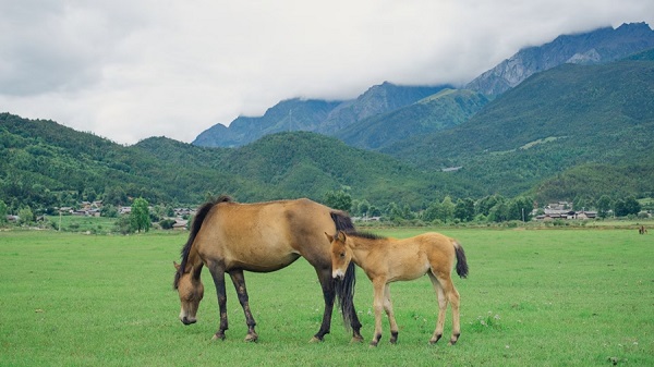 春氣萌動,萬物復蘇。麗江文海綠意盎然,馬兒愜意地吃著青草,處處呈現著一派生機的景象。 (王元春 攝)