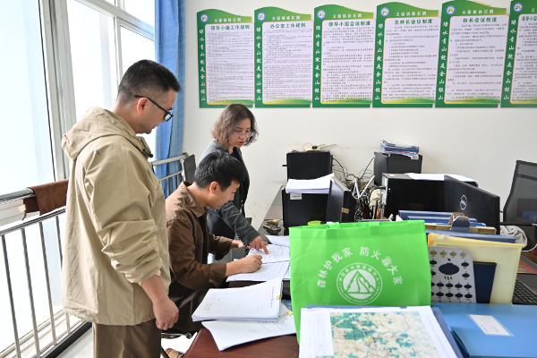 麻栗坡縣紀委監委立足監督首要職責,緊盯森林防火工作責任落實,通過隨機抽查、突擊檢查等方式,對職能部門巡防值守、宣傳發動、火源管控、防火物資配備、突發和應急響應等情況開展監督檢查,壓實責任守護綠水青山。圖為該縣紀檢監察干部在天保鎮林業站了解有關情況。(盤天文 攝)