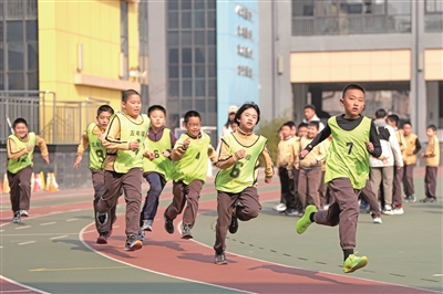提高人的健康素質(zhì),青少年是黃金期。新學(xué)期伊始,北京發(fā)布《關(guān)于進(jìn)一步加強(qiáng)新時(shí)代中小學(xué)體育工作的若干措施》,著重解決學(xué)生運(yùn)動(dòng)時(shí)長(zhǎng)不足、體育“陰陽(yáng)課表”等問(wèn)題,讓校園體育充分促進(jìn)學(xué)生身心健康發(fā)展,確保孩子們“眼里有光,身上有汗”。圖為近日,北京第二實(shí)驗(yàn)小學(xué)的學(xué)生們?cè)谶M(jìn)行1000米跑“班級(jí)賽”。 新華社記者 鞠煥宗 攝