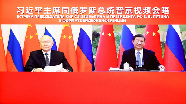 1月21日下午,國家主席習近平在北京人民大會堂同俄羅斯總統(tǒng)普京舉行視頻會晤。