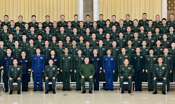 1月24日,中共中央總書記、國家主席、中央軍委主席習近平到北部戰區機關視察慰問,通過視頻看望基層官兵,檢查部隊戰備值班和執行任務情況,代表黨中央和中央軍委,向全體人民解放軍指戰員、武警部隊官兵、軍隊文職人員、預備役人員和民兵致以誠摯問候和新春祝福。這是習近平同北部戰區官兵代表合影留念。新華社記者 李剛 攝