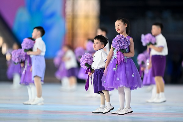 孩子們在進行閉幕式暖場表演。新華社記者 江漢 攝