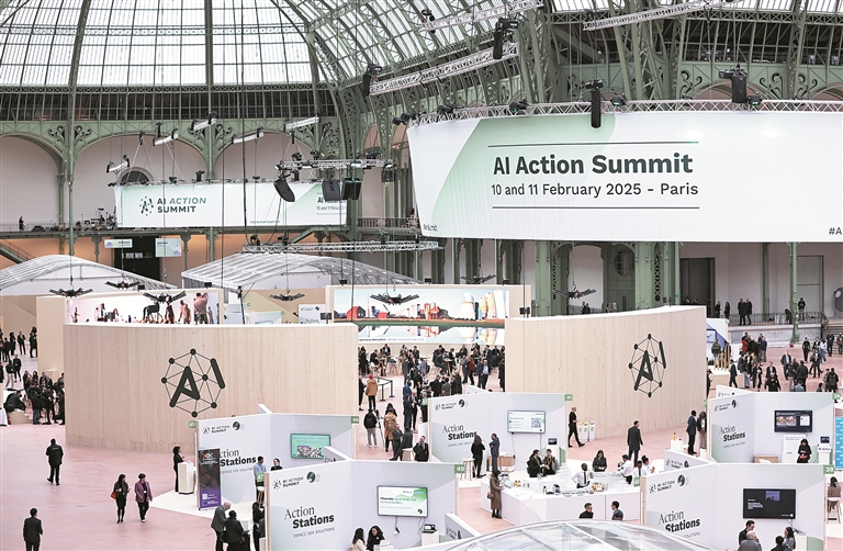 圖為2月10日,在法國巴黎大皇宮拍攝的人工智能行動峰會現場。 新華社記者 高靜 攝
