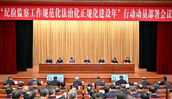 “紀(jì)檢監(jiān)察工作規(guī)范化法治化正規(guī)化建設(shè)年”行動動員部署會議2月25日在京召開,中共中央政治局常委、中央紀(jì)委書記李希出席會議并講話。他強調(diào),各級紀(jì)檢監(jiān)察機關(guān)要深入學(xué)習(xí)貫徹習(xí)近平新時代中國特色社會主義思想,堅決落實習(xí)近平總書記關(guān)于加強紀(jì)檢監(jiān)察隊伍建設(shè)的重要要求,高標(biāo)準(zhǔn)、高質(zhì)量開展“紀(jì)檢監(jiān)察工作規(guī)范化法治化正規(guī)化建設(shè)年”行動,著力打造忠誠干凈擔(dān)當(dāng)、敢于善于斗爭的紀(jì)檢監(jiān)察鐵軍,更好擔(dān)負起在新時代新征程上的使命任務(wù)。