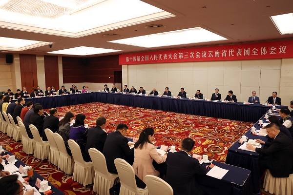 3月10日,出席十四屆全國人大三次會議的云南省代表團舉行全體會議。