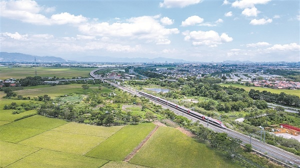 圖為在印度尼西亞萬隆,雅萬高鐵高速動車組列車在行駛。新華社記者 徐欽 攝