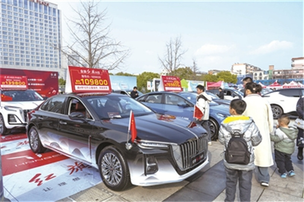近日,眾多汽車廠商在湖北省襄陽市諸葛亮廣場舉行春季車展,銷售商推出以舊換新、免費升級、現金優惠、終身質保等各種促銷活動吸引客戶看車、購車。 圖片來源:視覺中國