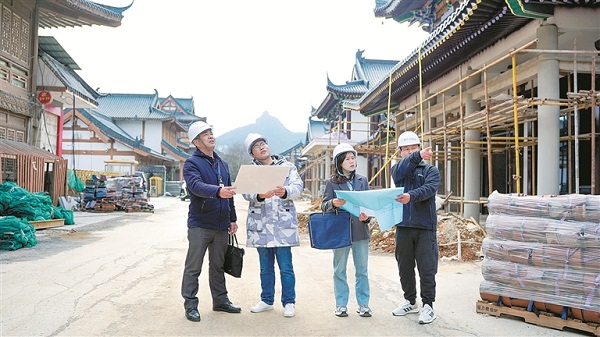 廣西壯族自治區桂林市紀檢監察機關立足監督職責定位,緊盯項目管理中暴露出的“吃拿卡要”、亂作為等突出問題強化監督檢查,整治營商環境“梗阻病”。圖為近日,該市疊彩區紀檢監察干部在古宋城文化休閑街區項目現場了解相關情況。 陳杰 攝