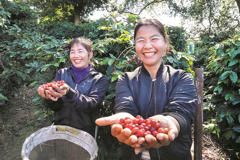 春光明媚,咖啡果香。這一季的咖啡鮮果采收已經(jīng)進(jìn)入尾聲,云南省普洱市思茅區(qū)南島河村迎來(lái)了不錯(cuò)的收成。該村是普洱市最早種植咖啡、種植面積最密集的地區(qū)之一,全村咖啡種植面積3.6萬(wàn)畝,村民70%以上的收入都來(lái)自周邊的咖啡產(chǎn)業(yè)。