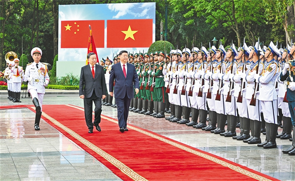 4月14日,中共中央總書記、國家主席習近平抵達河內對越南進行國事訪問。當日下午,越共中央總書記蘇林為習近平舉行隆重歡迎儀式。