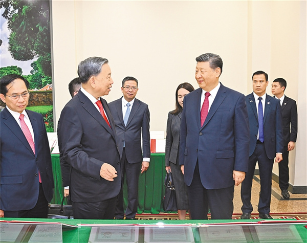 習近平強調,今年是中越建交75周年暨“中越人文交流年”。75年來,無論國際風云如何變化,雙方在爭取國家獨立和民族解放的斗爭中相互支持,在社會主義建設事業中攜手并進,在推進各自現代化進程中砥礪前行,成為社會主義國家團結合作的典范。面對變亂交織的國際形勢,中越兩國堅持和平發展,深化友好合作,為世界帶來了寶貴的穩定性和確定性。站在新的歷史起點上,雙方要繼往開來、攜手前行,賡續“越中情誼深、同志加兄弟”的傳統友誼,按照政治互信更高、安全合作更實、務實合作更深、民意基礎更牢、多邊協調配合更緊、分歧管控解決更好的“六個更”總體目標,高質量推動全面戰略合作,確保中越命運共同體建設行穩致遠,為構建人類命運共同體作出新的更大貢獻。