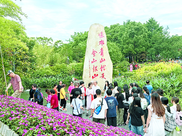 在余村廣場上,矗立著一塊刻著“綠水青山就是金山銀山”的石碑,見證著一個個“人不負青山,青山定不負人”的生態實踐。