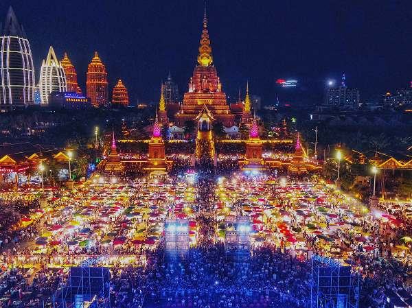 最后一縷夕陽(yáng)沉入瀾滄江,告莊西雙景星光夜市的燈火次第亮起,這座復(fù)刻自19世紀(jì)景洪古城的“時(shí)光琥珀”,在夜色中蘇醒成流動(dòng)的盛宴。作為亞洲規(guī)模最大的夜市,東南亞風(fēng)情與市井煙火的奇妙共生體,它讓夜晚如同天上璀璨的繁星一樣多彩。
