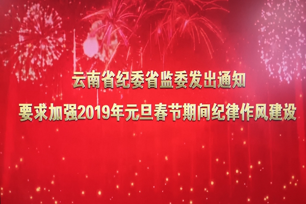 云南省紀委省監(jiān)委發(fā)出通知 要求加強2019年元旦春節(jié)期間紀律作風建設